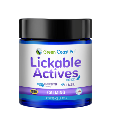 The Lickable Actives- Calming formula contains only peanuts and L-Theanine. L-Theanine is found in tea leaves. This tasty formula is perfect in a stuffable toy, or just off of a spoon!