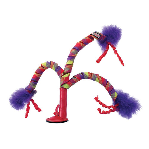 The suction cup makes Connects Curlz a moveable feast of feline fun. Let your kitty play with it upright on the tile floor, then switch things sideways by sticking it to a window. The spring-loaded base keeps it standing, swaying and bouncing back from batting, sparking your cat’s hunting instincts. Dynamic ribbons, feathers and tinkling bells are ideal for long-lasting solo play.